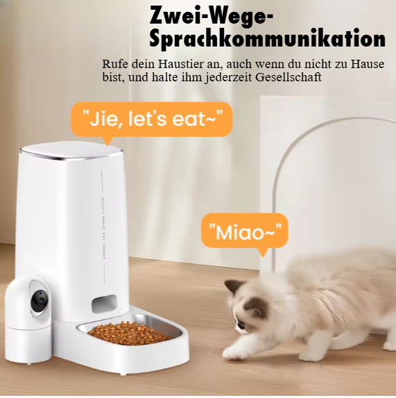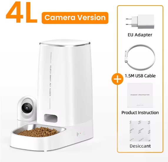 Rojeco 4L Automatischer Futterspender mit 360° drehbarer Kamera, Video-WiFi-Verbindung, intelligenter sprachgesteuerter Futterautomat für Katzen und Hunde